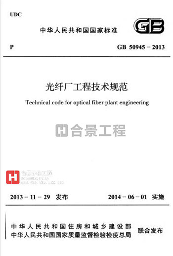 現批準《光纖廠工程技術規范》為國家標準,編號為GB 50945-2013,自2014年6月1日起實施。其中,第5.1.3、5.1.5、7.3.2、7.3.4條為強制性條文,必須嚴格執行。
