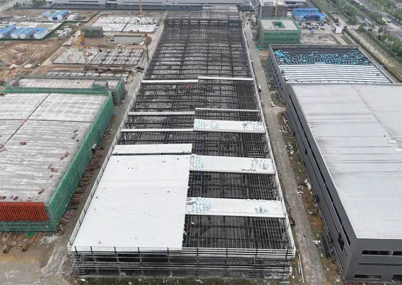 該項目總投資50億元。在建的一期包括4GWH 鋰電池潔凈車間、倉儲物流、研發及辦公樓等配套設施,此次封頂的為模組pack2車間,主要承擔電芯產品的存儲與發送、電芯預處理、中小模組安裝、模組測試以及模組產品的存儲發送等生產任務。